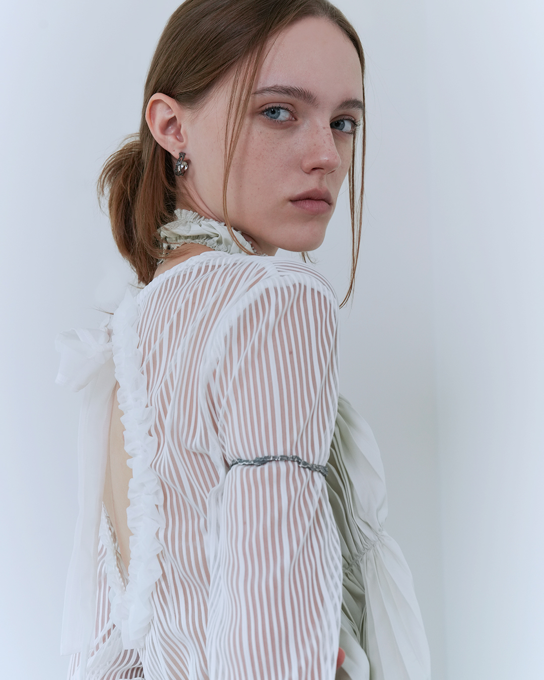 * 팔뚝에 착용한 제품은 기본 타원형 뱅글이 아닌 연출용 원형으로 제작된 제품으로,